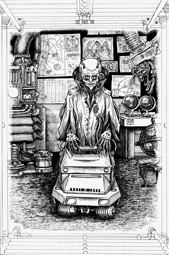 This adventure, penned by Peter Darvil-Evans, was a somewhat surreal chase across myriad planes of existance. The illos were done with a .25 and .18 Rotring pen. |
