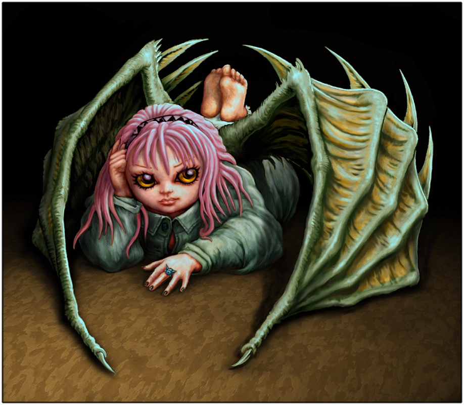 A digital image I did to please my daughter, who is a bit of an otaku! This restless batwinged vampire girl is influenced by the sort of Manga art that Laylah likes. Having looked at a lot of the art and watched the Anime with her I've grown quite partial to it myself.