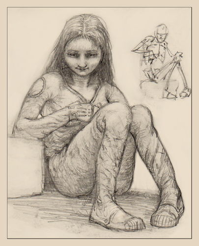 a "thinking aloud" type of doodle from my A4 sketchbook. The pensive look
